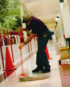 GEORGE The only thing between us and bacterial override, George stops in at coffee break, then fumigates. He mops, scrubs and helps with investments. “Buy low, sell high, but that doesn’t mean high on drugs,” he says, chuckling. “Hold them drugs. Don’t be a miser. Buy Pfizer!” Be nice to George if you want toilet paper. |